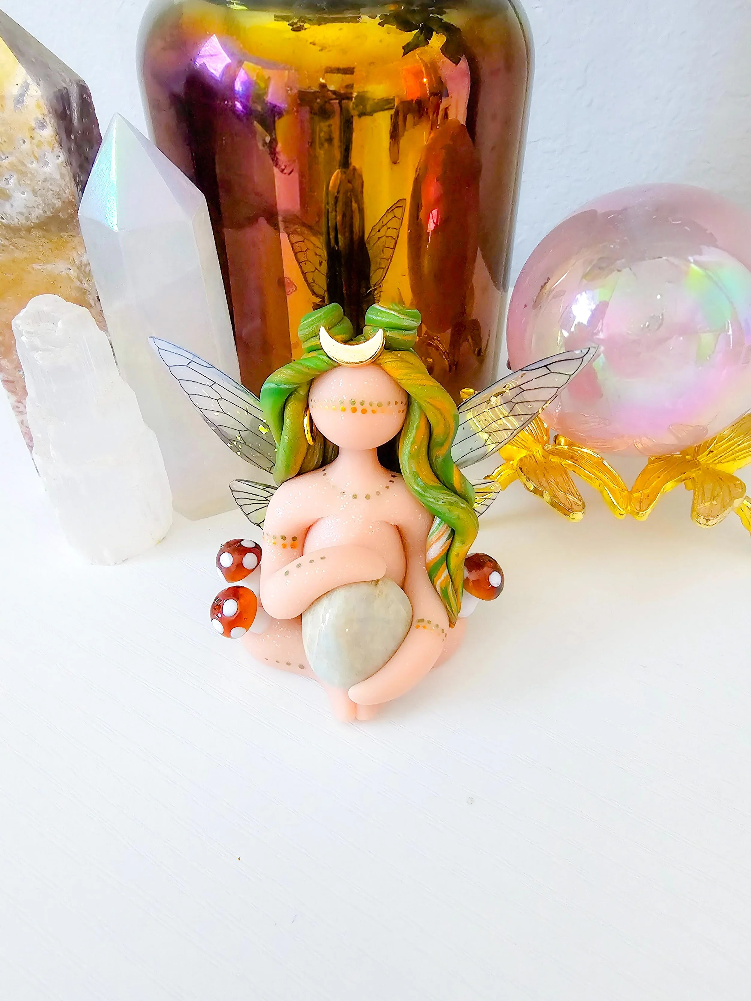 Each Goddess is sculpted and painted by hand with her own unique flaws. Each Goddess is quite fragile and should be cared for with intention. A care card will be provided on how to work with your Goddess, how to repair her if a piece has come undone, and how to recharge and nurture her magic.