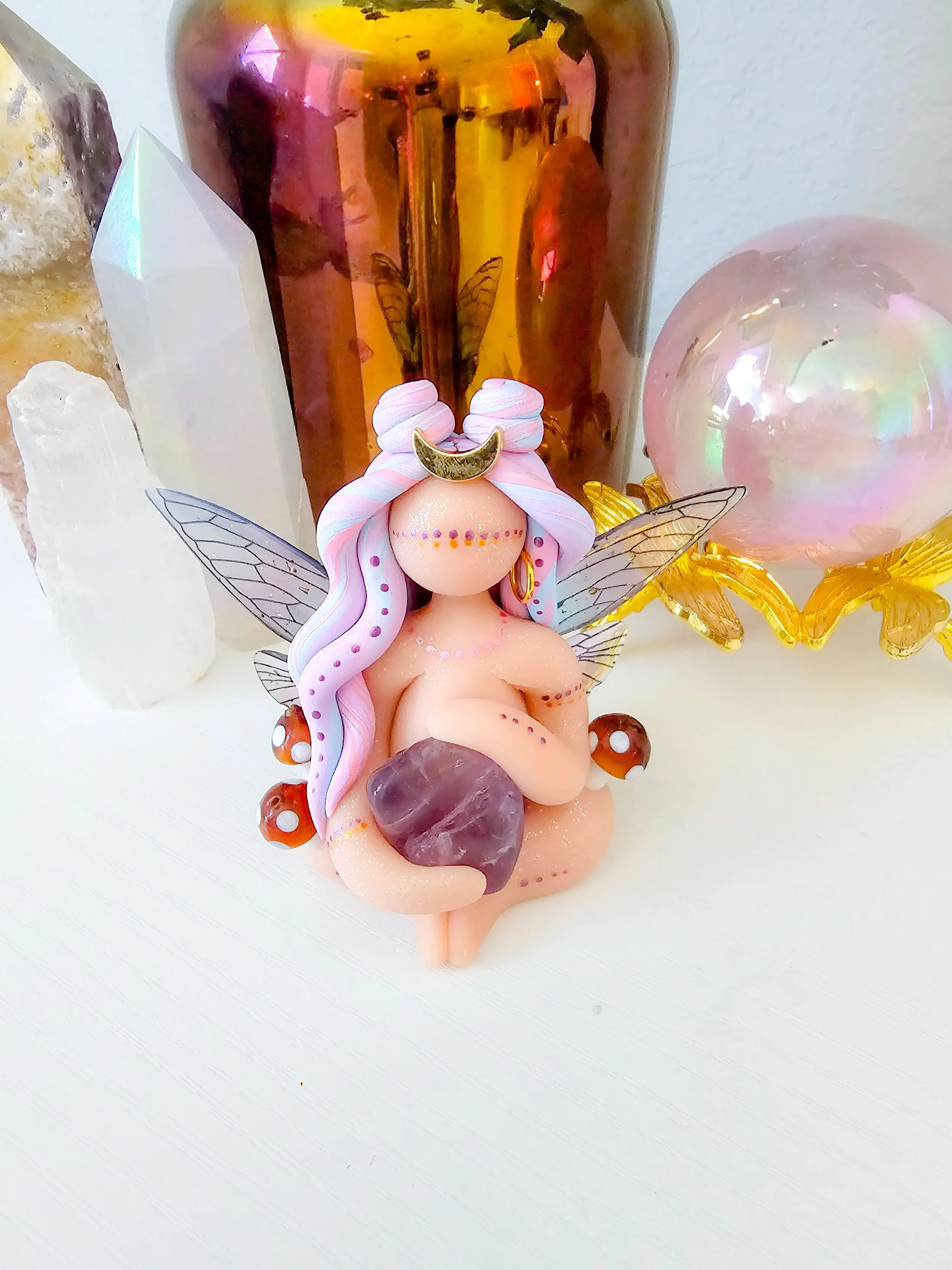 Each Goddess is sculpted and painted by hand with her own unique flaws. Each Goddess is quite fragile and should be cared for with intention. A care card will be provided on how to work with your Goddess, how to repair her if a piece has come undone, and how to recharge and nurture her magic.